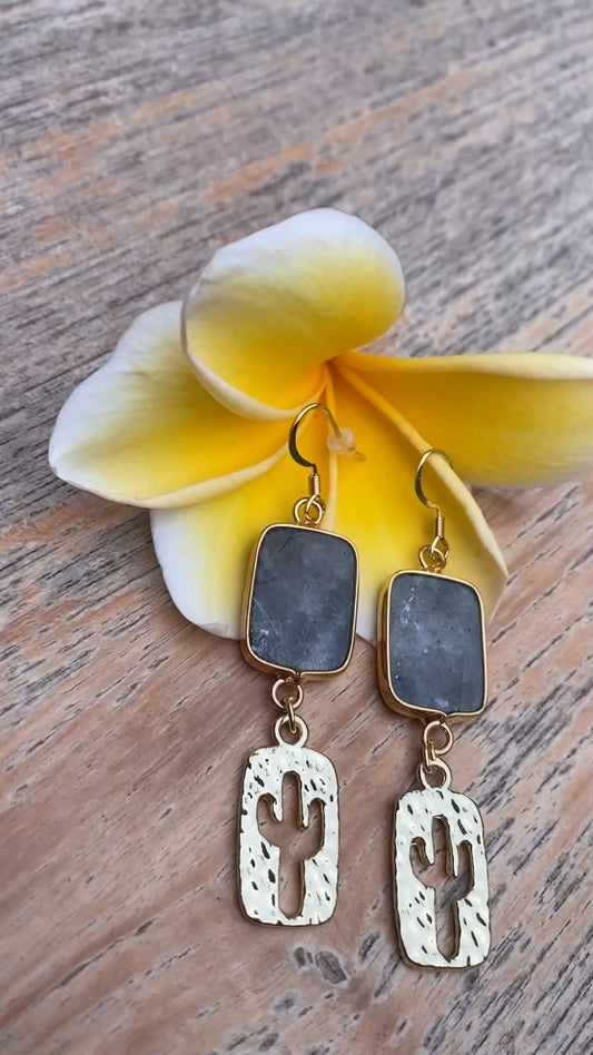 🌵 Boucles d’oreilles Jaspe Dalmatien & Cactus Doré