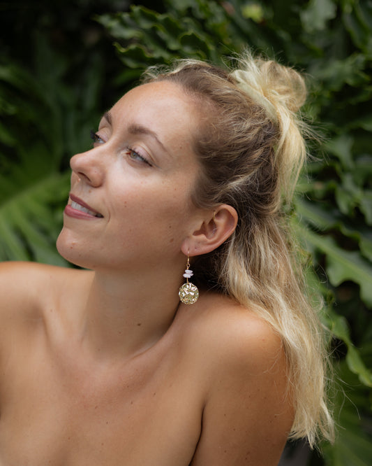 Boucles d’oreilles Quartz Rose et Rond Martelé 🌸
