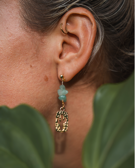🌵 Boucles d’oreilles éclats d'aventurine & Cactus Doré