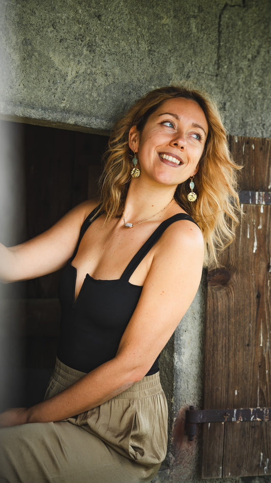 Créoles plaquées or et Jaspe Sésame 🧘🏼♀️