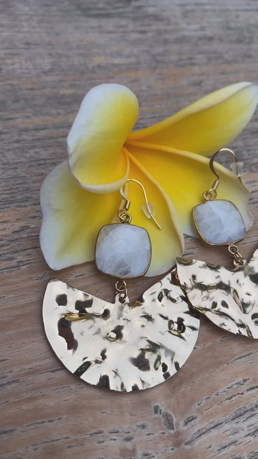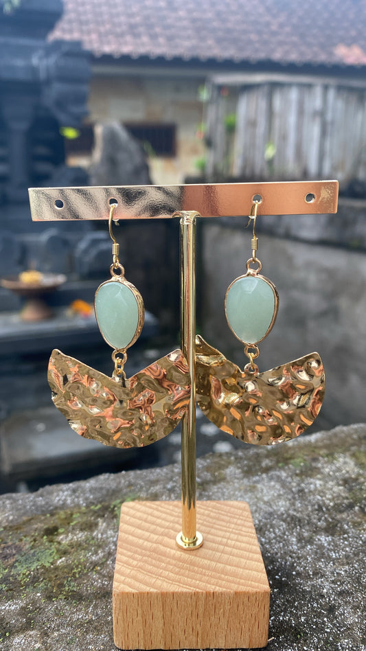 🌙 Boucles d’oreilles Aventurine & Demi-Lune Dorée