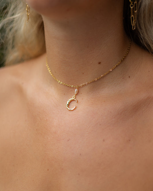 Collier perle naturelle et lune plaquée or 14k 🌙