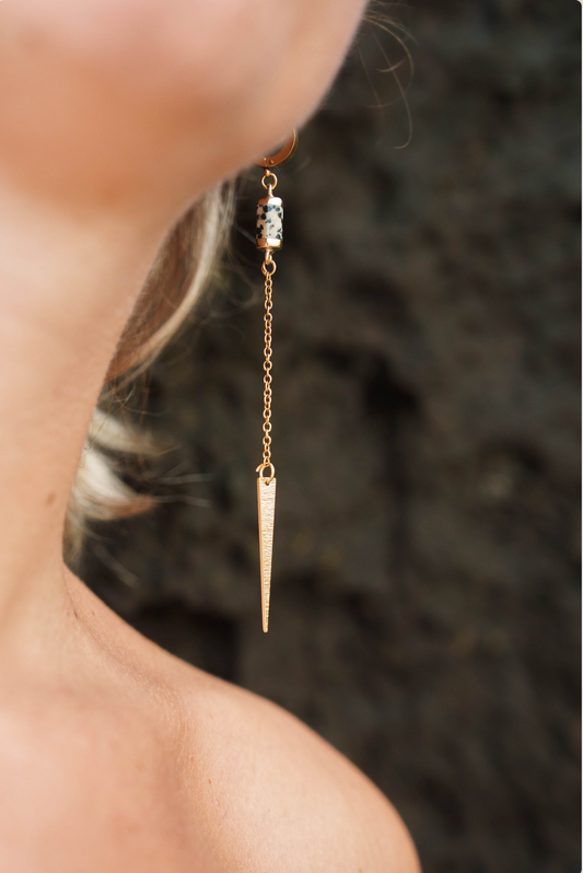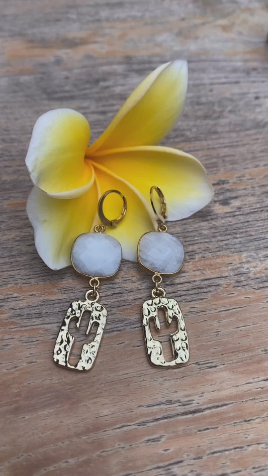 🌵 Boucles d’oreilles Jaspe Dalmatien & Cactus Doré