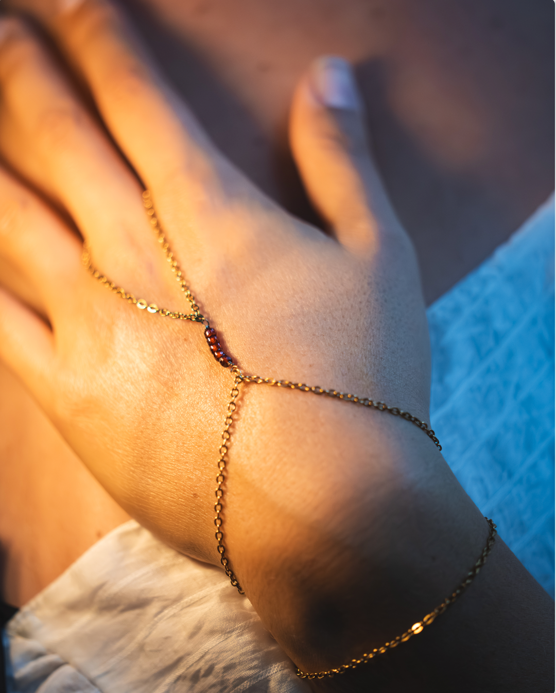 💫 Symbolique : le bijou de main est un talisman du lien entre le cœur et les gestes — un rappel que nos actions peuvent être guidées par l’amour, la beauté et la conscience.